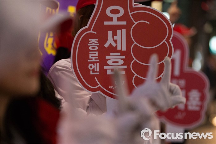 (서울=포커스뉴스) 20대 총선을 8일 앞둔 5일 오후 서울 종로구 통인시장 일대에서 오세훈 새누리당 종로구 후보가 퇴근길 선거유세를 하고 있다.