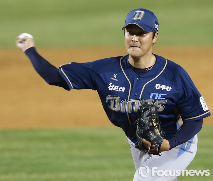 (서울=포커스뉴스) 5일 서울 잠실구장에서 열린 2016프로야구 NC-두산 경기에서 NC 투수 박민석이 투구하고 있다.