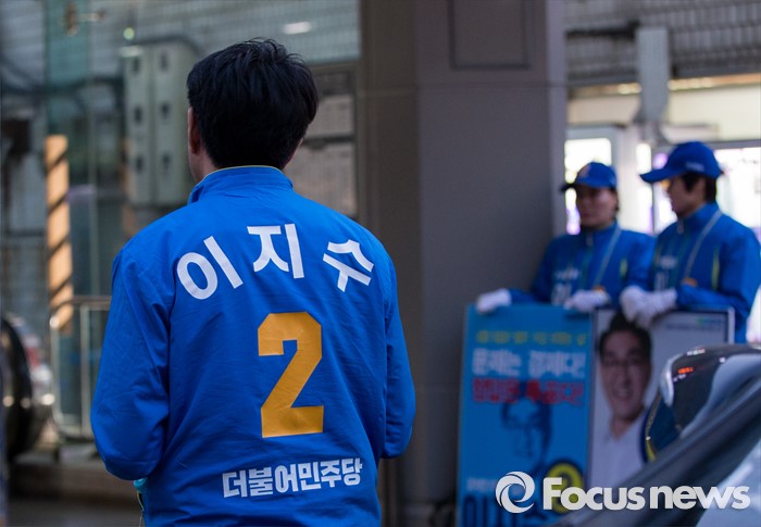 | △ 유권자들 기다리는 이지수 |