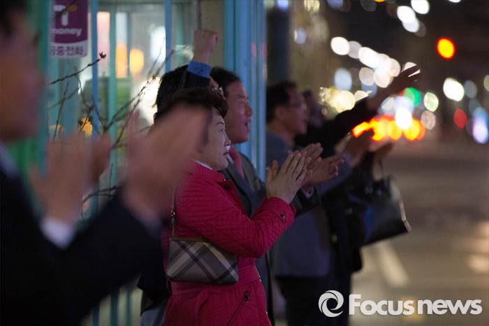 (서울=포커스뉴스) 20대 총선을 8일 앞둔 5일 오후 서울 종로구 통인시장 일대에서 오세훈 새누리당 종로구 후보 지지자들이 박수치고 있다.