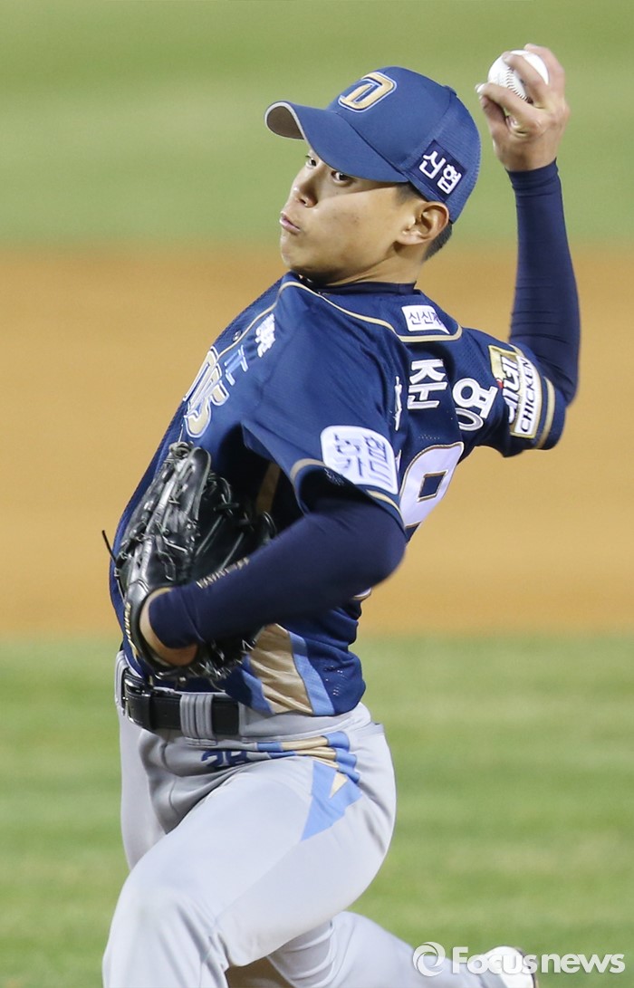 (서울=포커스뉴스) 5일 서울 잠실구장에서 열린 2016프로야구 NC-두산 경기 6회말 NC 투수 박준영이 두산 정수빈을 상대로 투구하고 있다.