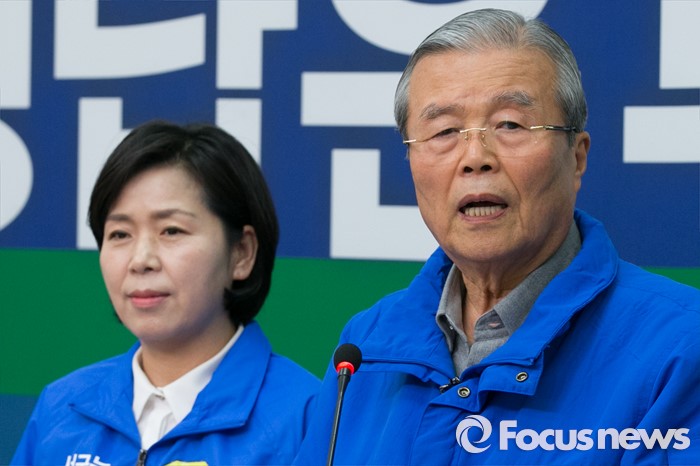 (서울=포커스뉴스) 김종인(오른쪽) 더불어민주당 비대위 대표가 6일 오전 서울 여의도 국회 당대표회의실에서 광주경제살리기 특별기자회견을 하고 있다. 왼쪽은 양향자 광주 서구을 후보.