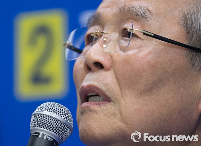 (서울=포커스뉴스) 6일 오전 진영 더불어민주당 서울 용산구 후보 선거사무소에서 열린 중앙선거대책위원회의에 참석한 김종인 비대위 대표 겸 선대위원장이 모두발언을 하고 있다.
