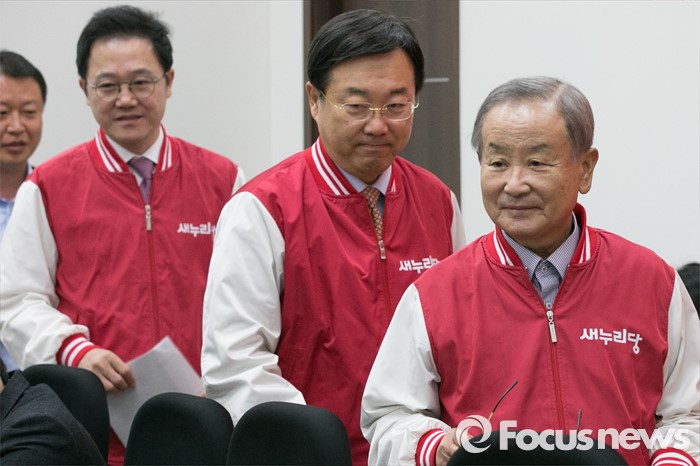 강서울=포커스뉴스) 강봉균(오른쪽) 새누리당 공동선대위원장과 김종석(오른쪽 두번째) 공약본부장, 강석훈 경제정책본부장이 6일 오전 서울 여의도 국회에서 경제정책 공약 5호를 발표하기 위해 입장하고 있다.