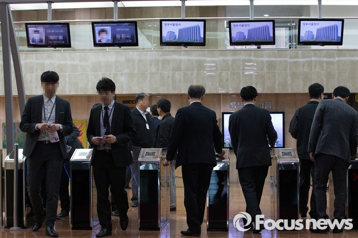 (서울=포커스뉴스) 공무원 시험 수험생이 정부서울청사내 인사혁신처 사무실에 침입해 자신의 시험 성적을 조작하는 사건이 발생해 정부청사 방호와 정보보안에 또 다시 허점을 드러냈다. 사진은 6일 오전 서울 종로구 정부서울청사 출입문의 모습.