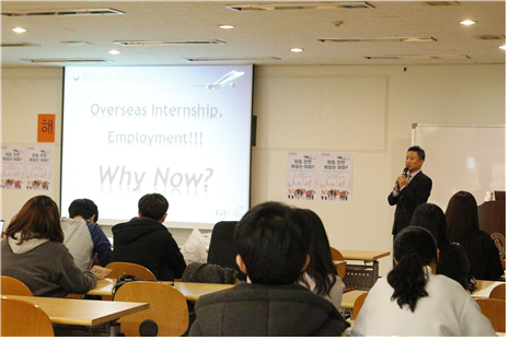 이날 특강은 '국비지원 해외취업·인턴 프로그램'을 내용으로 해외취업인턴십 전문기관인 ㈜글로벌인턴십컨설팅 김석원 부장의 강연으로 진행됐다.