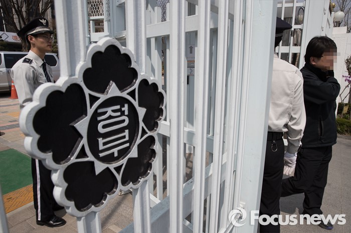 (서울=포커스뉴스) 공무원 시험 수험생이 정부서울청사내 인사혁신처 사무실에 침입해 자신의 시험 성적을 조작하는 사건이 발생해 정부청사 방호와 정보보안에 또 다시 허점을 드러냈다. 사진은 6일 오전 서울 종로구 정부서울청사 출입문의 모습.