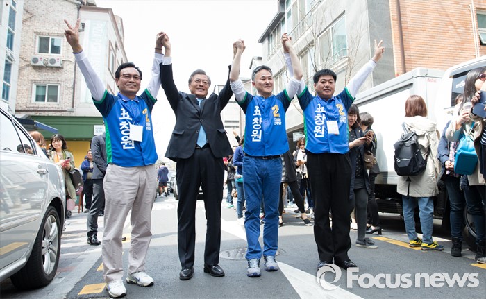 (용인=포커스뉴스) 6일 오전 경기 용인 기흥구 보정동 카페거리에서 문재인 더불어민주당 전 대표가 표창원 더민주 용인시정 후보 지원유세를 하고 있다.