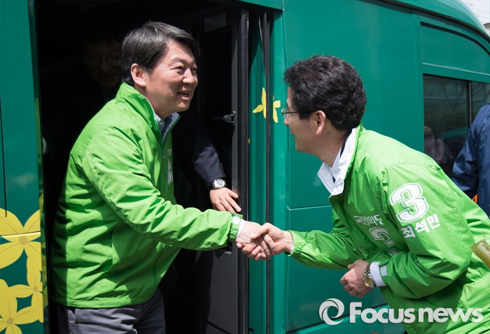 (대구=포커스뉴스) 안철수 국민의당 상임공동대표가 6일 오후 대구광역시 북구 경북대학교 앞에서 최석민 대구 북구갑 후보와 인사를 나누고 있다.