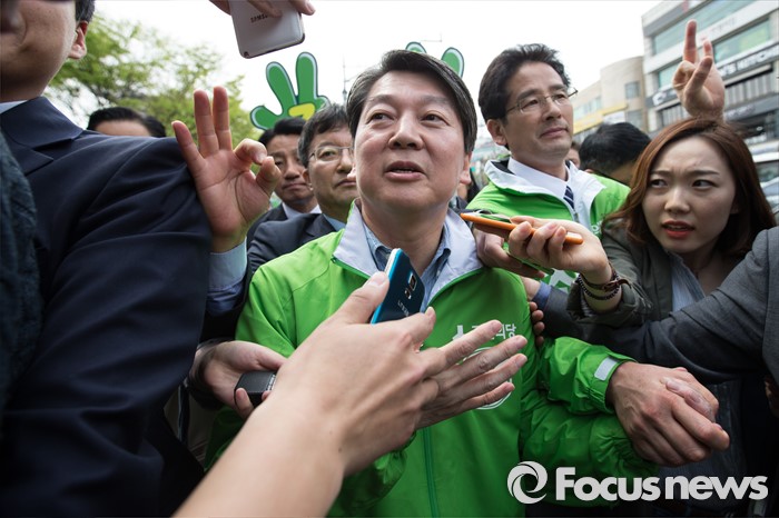 (대구=포커스뉴스) 안철수 국민의당 상임공동대표가 6일 오후 대구광역시 북구 경북대학교 앞에서 최석민 대구 북구갑 후보 지원유세를 마치고 기자들에게 질문을 받고 있다.