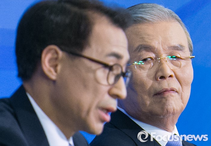 (서울=포커스뉴스) 김종인(오른쪽) 더불어민주당 비대위 대표 겸 선대위원장이 6일 오후 서울 종로구 세종문화회관에서 열린 한국방송기자클럽 초청 토론회에 참석해 패널들의 질문을 듣고 있다.