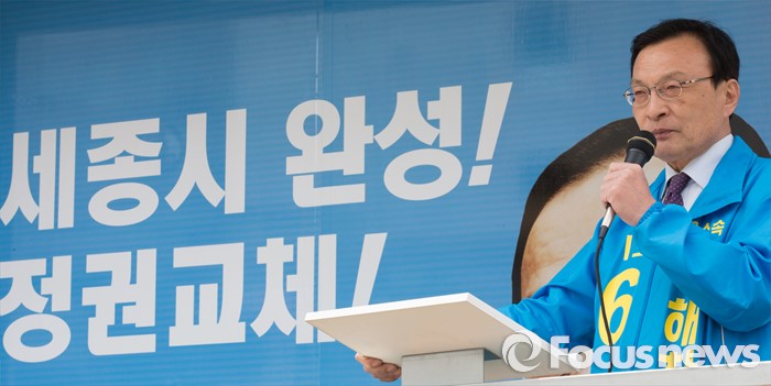 (세종=포커스뉴스) 이해찬 무소속 후보가 6일 오후 세종시 도담동 중앙타운 네거리에서 지지를 호소하고 있다.