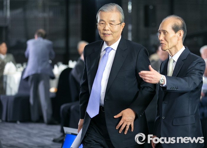 (서울=포커스뉴스) 김종인(왼쪽) 더불어민주당 비대위 대표 겸 선대위원장이 6일 오후 서울 종로구 세종문화회관에서 열린 한국방송기자클럽 초청 토론회에 참석하고 있다.