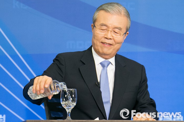 (서울=포커스뉴스) 김종인 더불어민주당 비대위 대표 겸 선대위원장이 6일 오후 서울 종로구 세종문화회관에서 한국방송기자클럽 초청 토론회에 앞서 물 마실 준비를 하고 있다.