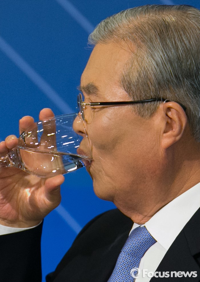 | △ 토론 마치고 목 축이는 김종인 |