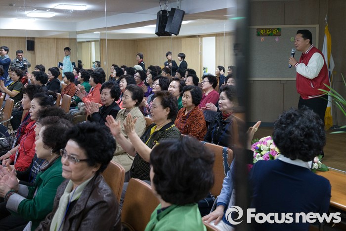 (서울=포커스뉴스) 총선을 일주일 앞둔 6일 오후 서울 강서구의 한 노래교실을 찾은 구상찬 새누리당 강서구갑 후보가 지지를 호소하고 있다.
