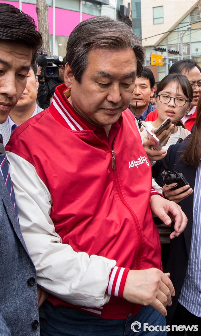 (아산=포커스뉴스) 6일 오후 충남 아산 충무로에서 이명수 새누리당 아산시갑 후보 지원유세에 나선 김무성 대표가 지지연설을 마친 후 버스로 향하고 있다.