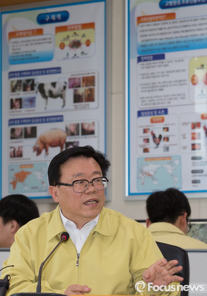 (세종=포커스뉴스) 이동필 농림축산식품부 장관이 6일 오후 세종시 정부세종청사 농식품부 방역대책상황실에서 가축방역 상황점검회의를 열고 회의를 주재하고 있다.
