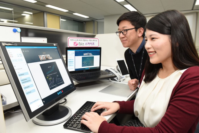 PC에서는 프로그램 형태로 설치하고 모바일에서는 앱 형태로 제공한다. 모든 버전의 윈도우는 물론 iOS, 안드로이드까지 모두 지원하기 때문에 때와 장소를 가리지 않고 커뮤니케이션이 가능하다.LG유플러스의 비즈스카이프 서비스.<사진제공=LG유플러스>