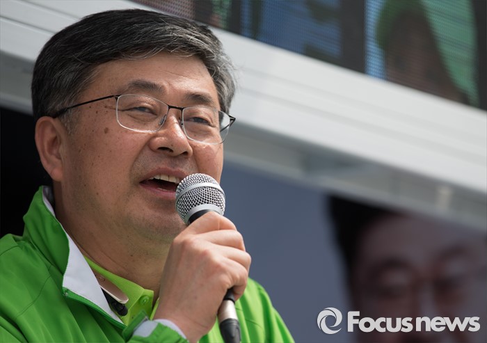(인천=포커스뉴스) 제20대 총선에 출마한 최원식 국민의당 계양을 후보가 6일 오후 인천 계양구 계산역 앞에서 선거운동을 하고 있다.