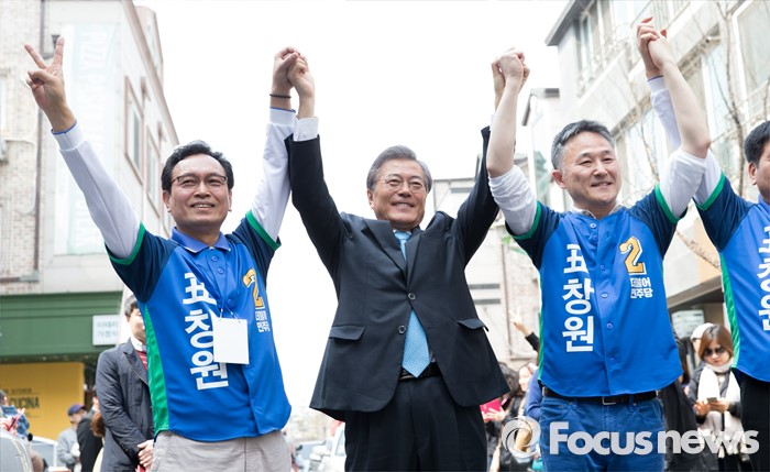 | △ 만세 외치는 문재인과 표창원 |