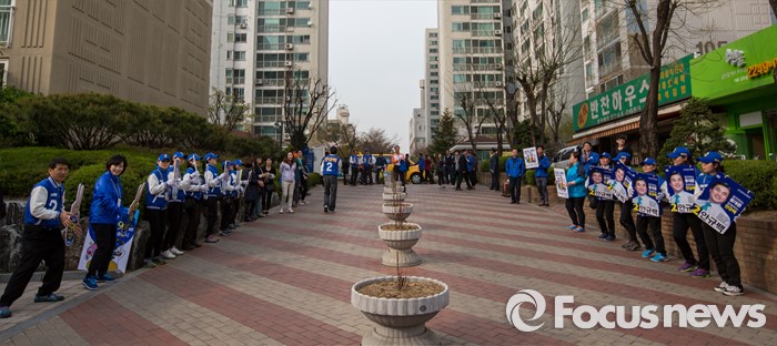 (서울=포커스뉴스) 6일 오후 서울 동대문구 휘경동 일대에서 안규백 더불어민주당 동대문구갑 후보 선거운동원들이 선거운동을 하고 있다.