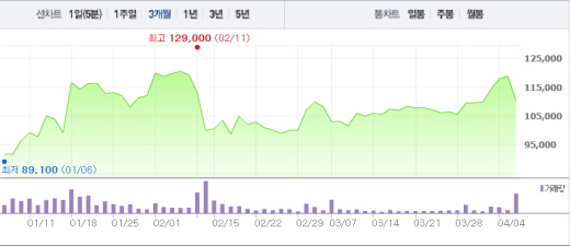 현재 셀트리온의 시가총액은 12조4729억원으로 코스닥 시장에서 1위, 코스피 시장에서 20위권을 차지하고 있는데, 시가총액이 너무 크다는 점도 향후 주가 상승에 부담으로 작용하고 있다.주가흐름<사진출처=네이버 캡쳐>