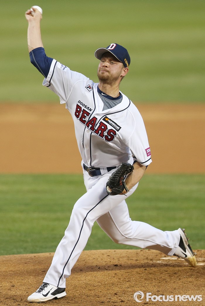 (서울=포커스뉴스) 6일 서울 잠실구장에서 열린 2016 프로야구 NC-두산 경기에서 1회초 두산 선발투수 보우덴이 투구하고 있다.