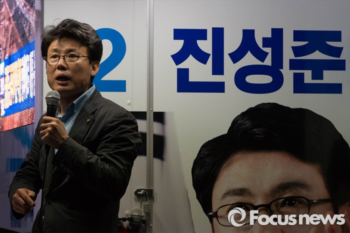 (서울=포커스뉴스) 20대 총선을 일주일 앞둔 6일 오후 서울 강서구 신방화역 인근에서 진성준 더불어민주당 강서구을 후보가 퇴근길 유세를 하고 있다.