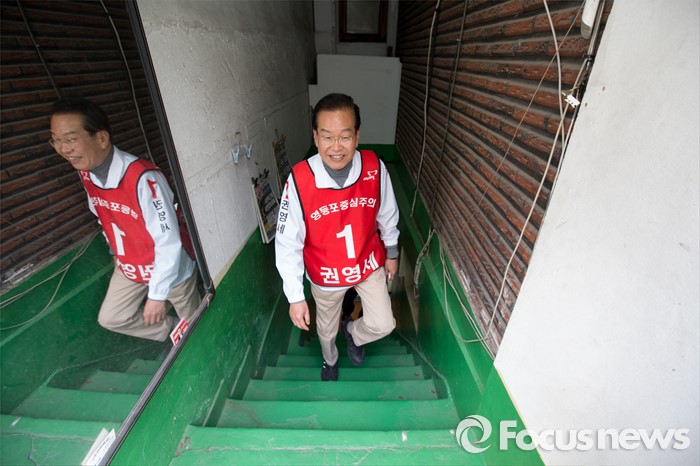 (서울=포커스뉴스) 6일 오후 서울 영등포구 대림1동 일대에서 권영세 새누리당 영등포구을 후보자가 유세를 하고 있다.