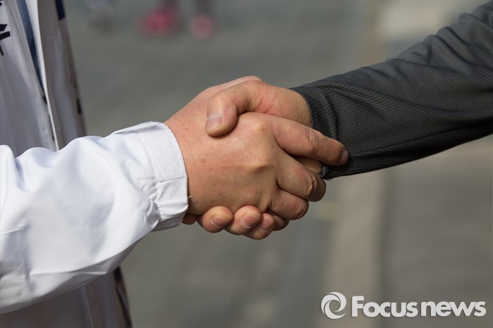 (서울=포커스뉴스) 6일 오후 서울 영등포구 한양아파트 사거리 일대에서 신경민 더불어민주당 영등포구을 후보자가 유세를 하고 있다.