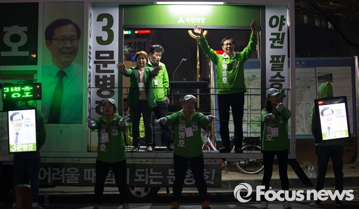 (인천=포커스뉴스) 제20대 총선에 출마한 문병호 국민의당 부평갑 후보가 6일 오후 인천 부평구 부평역 인근에서 선거운동을 하고 있다.