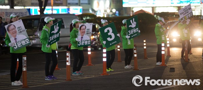 (인천=포커스뉴스) 제20대 총선에 출마한 문병호 국민의당 부평갑 후보 선거운동원들이 6일 오후 인천 부평구 부평역 인근에서 선거운동을 하고 있다.