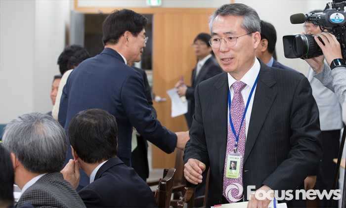 (세종=포커스뉴스) 7일 오전 세종시 정부세종청사 고용노동부 최저임금위원회 대회의실에서 열린 제1차 전원회의에서 박준성 위윈장이 입장하고 있다.