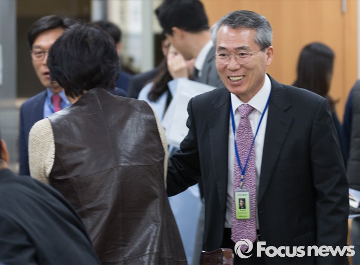 (세종=포커스뉴스) 7일 오전 세종시 정부세종청사 고용노동부 최저임금위원회 대회의실에서 열린 제1차 전원회의에서 박준성 위윈장이 위원들과 인사를 하고 있다.