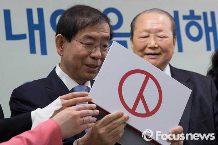 (서울=포커스뉴스) 20대 총선을 6일 앞둔 7일 오전 박원순 서울시장이 서울시청 브리핑룸에서 제20대 국회의원선거 '공명선거 및 투표참여' 퍼포먼스를 하고 있다.