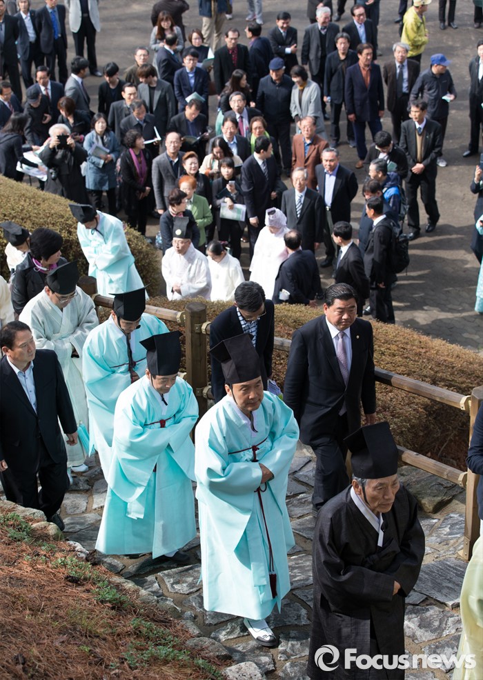 (남양주=포커스뉴스) 7일 오전 경기 남양주 다산유적지에서 손학규 전 더불어민주당 상임고문이 다산 정약용 선생 180주기 묘제·헌다례를 하고 있다.
