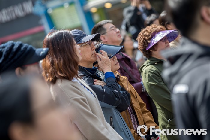 (군포=포커스뉴스) 7일 오전 경기도 군포시 산본중심상가에서 유권자들이 문재인 더불어민주당 전 대표의 연설을 경청 하고 있다.