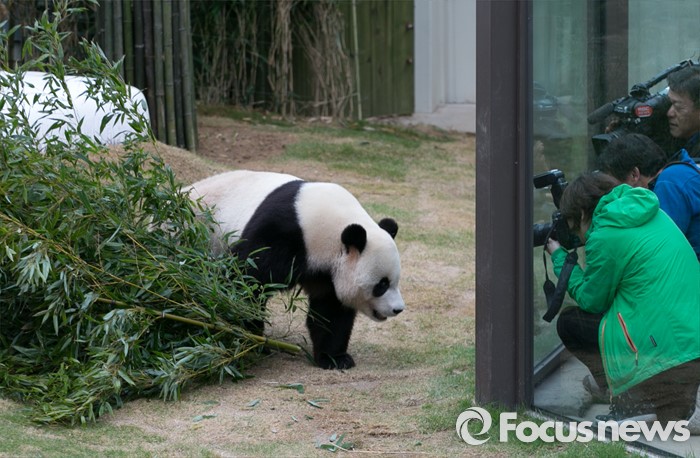 (용인=포커스뉴스) 에버랜드가 오는 21일 일반관람객에게 공개를 앞두고 판다월드에서 생활 중인 시진핑 중국 국가주석의 선물 '아이바오(愛寶)'와 '러바오(樂寶)' 판다커플을 7일 언론에 공개했다. 사진은 수컷 판다 러바오의 모습.