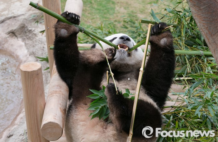 (용인=포커스뉴스) 에버랜드가 오는 21일 일반관람객에게 공개를 앞두고 판다월드에서 생활 중인 시진핑 중국 국가주석의 선물 '아이바오(愛寶)'와 '러바오(樂寶)' 판다커플을 7일 언론에 공개했다. 사진은 수컷 판다 러바오의 모습.