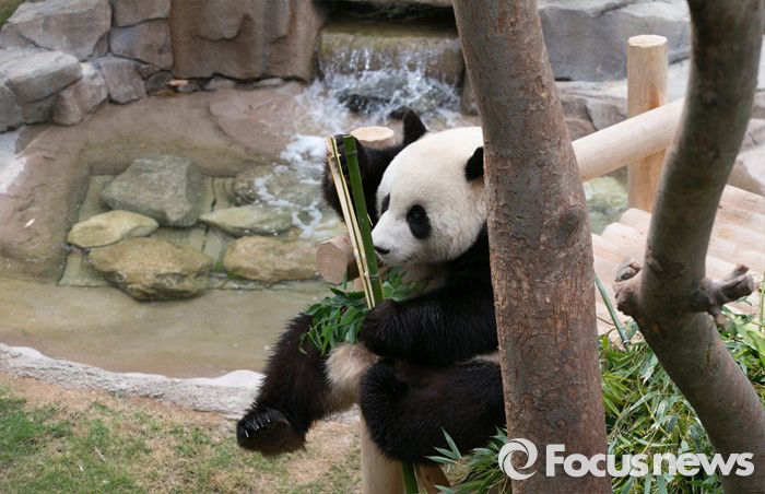 (용인=포커스뉴스) 에버랜드가 오는 21일 일반관람객에게 공개를 앞두고 판다월드에서 생활 중인 시진핑 중국 국가주석의 선물 '아이바오(愛寶)'와 '러바오(樂寶)' 판다커플을 7일 언론에 공개했다. 사진은 수컷 판다 러바오의 모습.