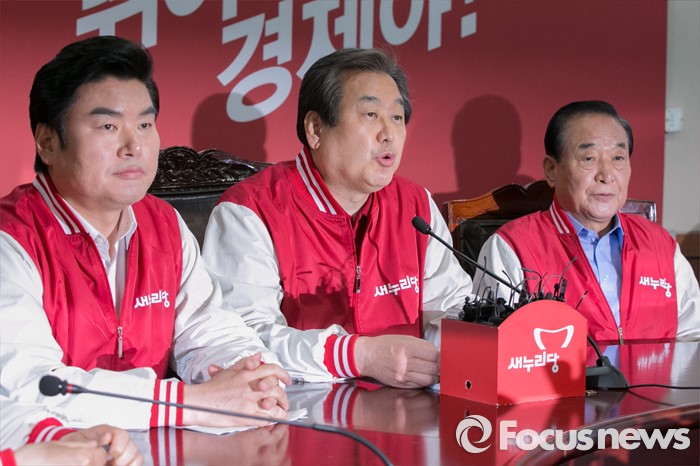 (서울=포커스뉴스) 김무성(가운데) 새누리당 대표가 7일 오전 서울 여의도 당사에서 열린 공동선대위원장 긴급회의에 참석해, 모두발언하고 있다.