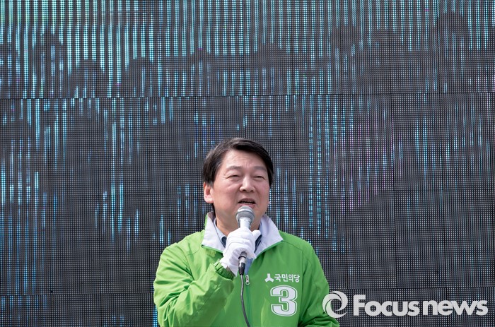 (하남=포커스뉴스) 7일 오후 경기 하남 신장시장 앞에서 안철수 국민의당 상임공동대표가 유형욱 국민의당 하남시 후보 지원유세를 하고 있다.