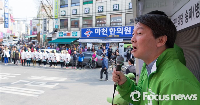 (서울=포커스뉴스) 7일 오후 서울 송파구 마천시장에서 안철수 국민의당 상임공동대표가 차성환 국민의당 송파구병 후보 지원유세를 하고 있다.