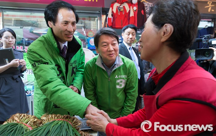 (서울=포커스뉴스) 7일 오후 서울 송파구 마천시장에서 안철수 국민의당 상임공동대표가 차성환 국민의당 송파구병 후보 지원유세를 하고 있다.