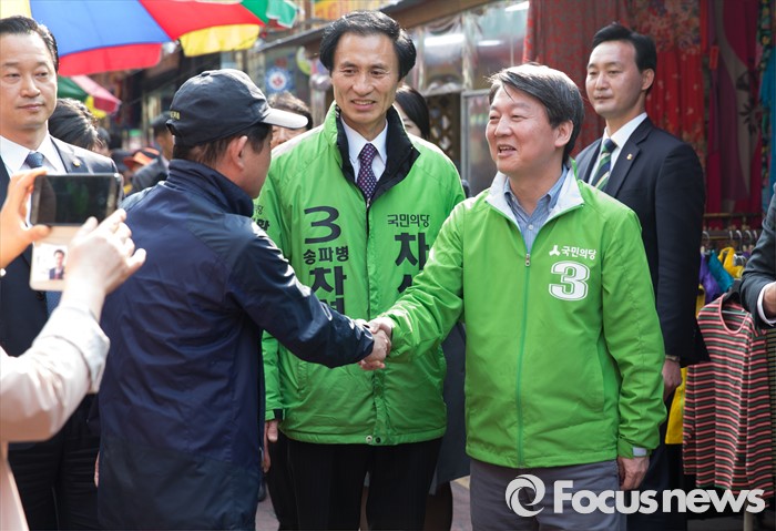 (서울=포커스뉴스) 7일 오후 서울 송파구 마천시장에서 안철수 국민의당 상임공동대표가 차성환 국민의당 송파구병 후보 지원유세를 하고 있다.