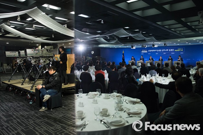 (서울=포커스뉴스) 7일 오후 서울 종로구 세종문화회관에서 열린 한국방송기자클럽 초청토론회에 참석한 강봉균 새누리당 공동선거대책위원장이 패널들과 토론을 하고 있다.