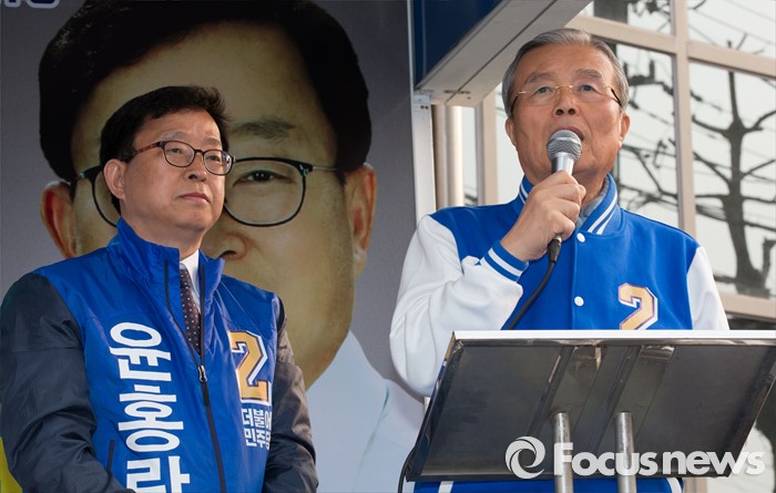 (충주=포커스뉴스) 김종민 더불어민주당 대표가 7일 오후 충북 충주 중앙로에서 윤홍락 후보의 지지를 호소하고 있다.
