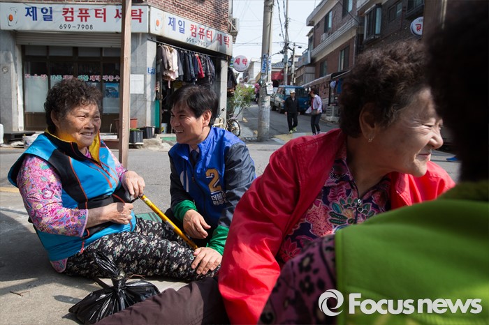 | △ 양천구을, 할머니 애로사항 듣는 이용선 후보 |