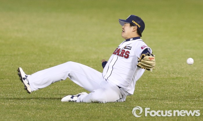 (서울=포커스뉴스) 7일 서울 잠실구장에서 열린 2016 프로야구 NC-두산 경기 3회 1사 2,3루에서 두산 우익수 민병헌이 NC 손시헌의 타구를 빠트리고 있다.